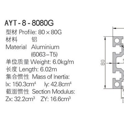4、可擴充性強:獨特的T型,凹槽設計,加裝組件、零件時,無需折卸型材,即可在任意位置安裝螺母螺絲,所以加裝、改裝設備簡單快捷